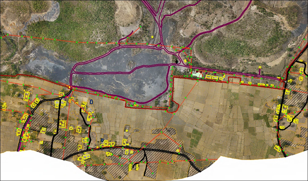 Digitization of road networks, haul routes, and drainages to improve the visibility and investigate connectivity.